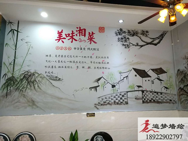 墙绘项目介绍:传统中国菜酸菜鱼配上浓厚的水墨画风,让店铺增添了色彩的同时,也带有浓厚的中国味