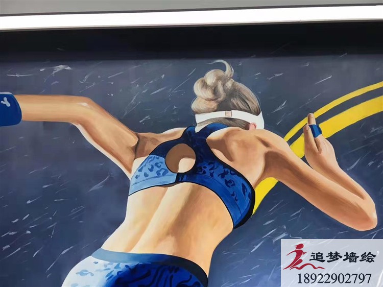 这是十月底一位来自广州体育西的客户,他开的是健身房,就这一面墙,但面积也不小了。他要我们画一幅有强烈3D感的健身彩绘,并且把一张阿诺德·施瓦辛格的墙绘发给我们参考。很快我们就设计了几张图给他看,看了之后他感觉还不是很好,而且想画女性健身画试试,所以我们又开始忙活起来,设计了两三张女性运动的图给他看。他就看上了这张,但他说怎么都是黑白色,想来应该是他发的那张图我们误解了他的意思,于是就简单的上色,然后P上到现场图。给客户看过后,他觉得很满意,还问我们什么时候去画,我们第二天就安排画师过去画,几个小时就画完了,就这样这个项目迅速的完成了。