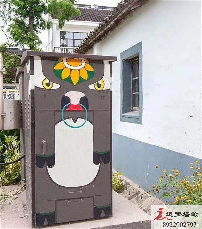 墙绘项目介绍: 龙岗这个的项目,彩绘在不同的电箱面上设计不同的扁平动物彩绘图案。我们设计师以卡通风格为主,用各种各样的扁平正面动物图像把画面做的精彩生动,色调明快,协调统一,展示了卡通简单、可爱、有趣的内容。