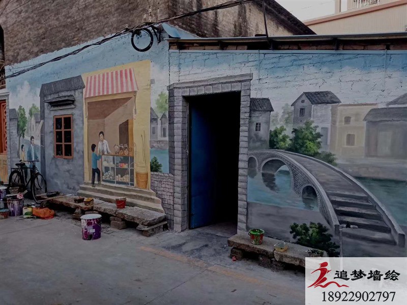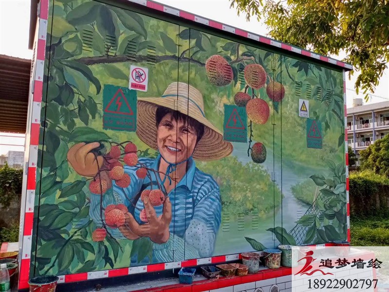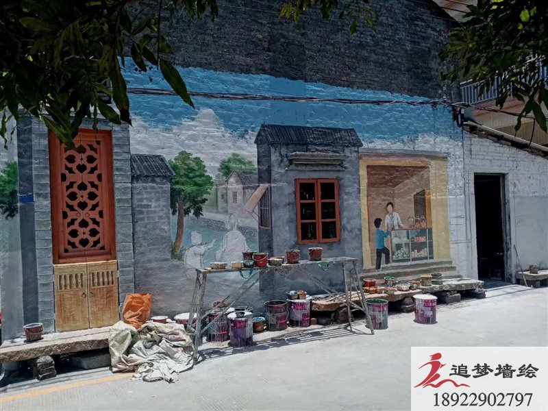 这个项目的彩绘在不同的墙面设计不同的彩绘图案。图案整体设计围绕美丽乡村为主题,用各种各样和谐的乡村农耕场景把画面做的精彩生动,色调明快,协调统一,展示了符合乡村气息的内容。